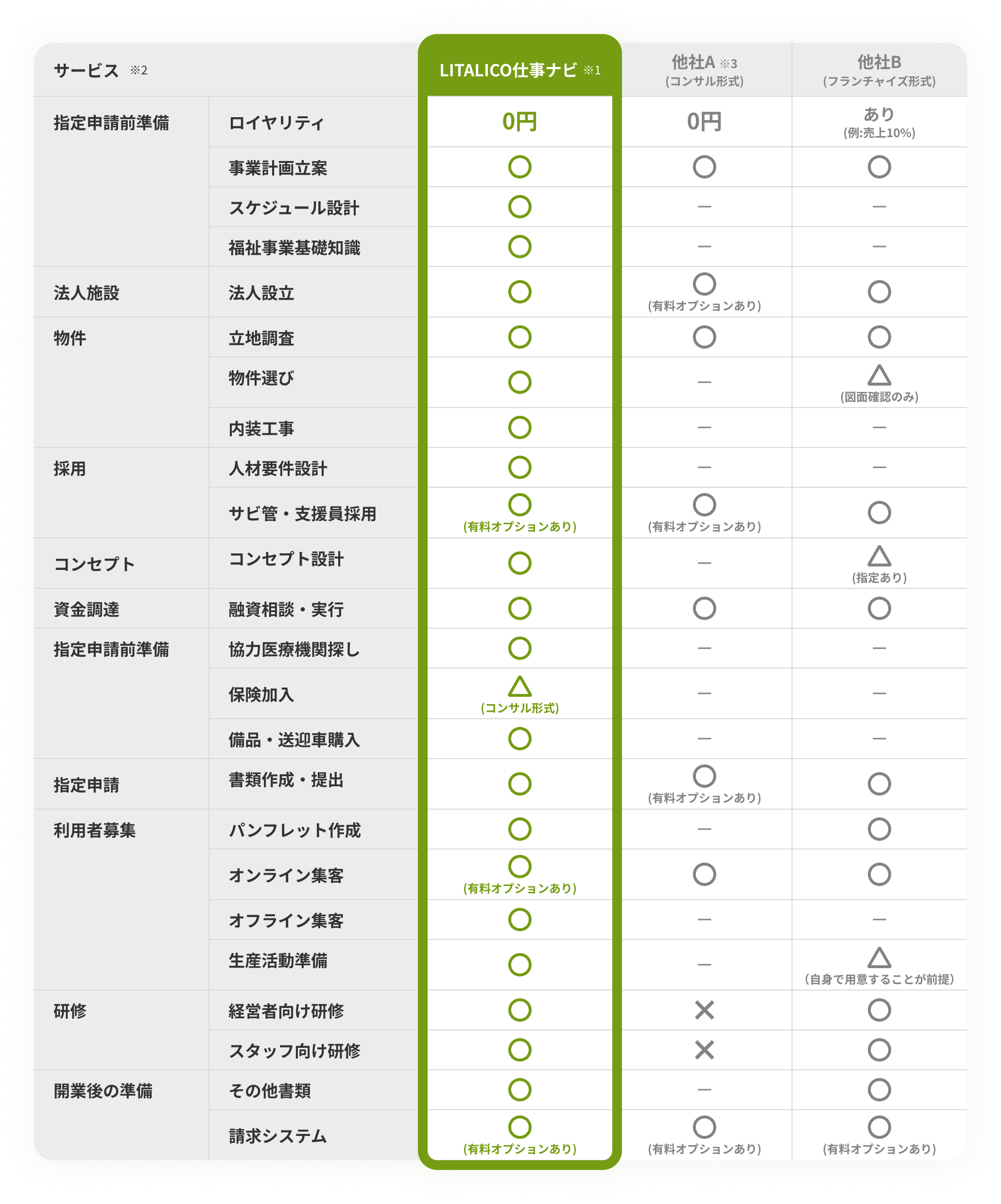 開業支援サービス比較例